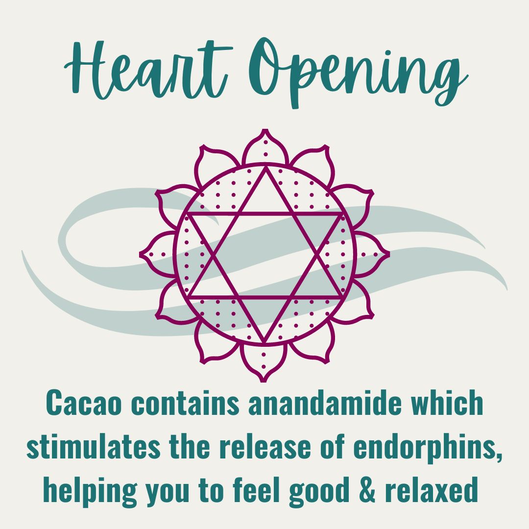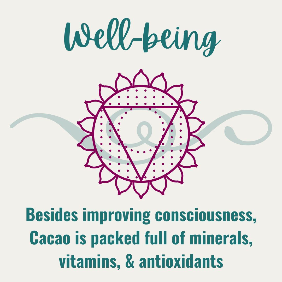 Cacao is densely packed with iron, magnesium, and antioxidants. It's an amazing source of serotonin, dopamine, anandamide, and phenylethylamine (PEA); four well-studied neurotransmitters connected with feelings of well-being that help alleviate depression.